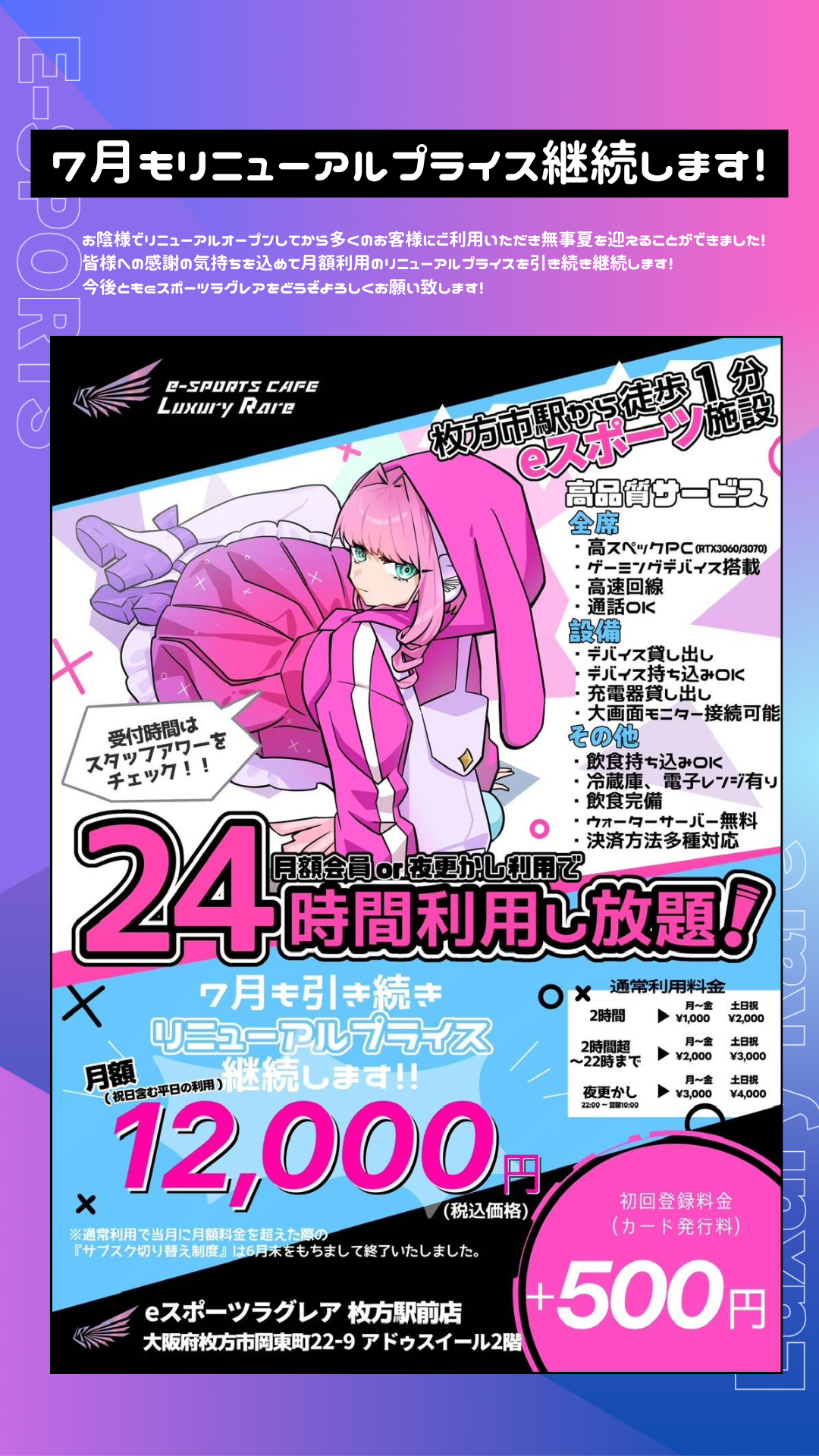 利用料金はeスポーツラグレアの通常料金のみでイベントへの追加料金は発生しません。
